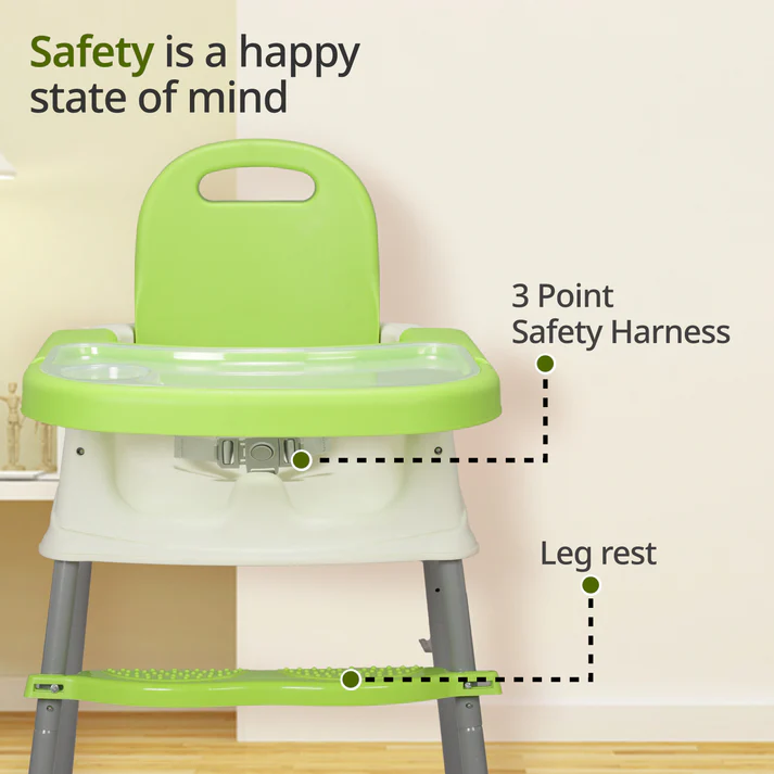 4 in 1 Convertible Baby High Chair with footrest, Convertible to High Chair, Low Chair, & Booster Seat, Essential for Baby Feeding (Green)