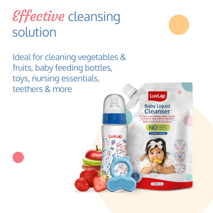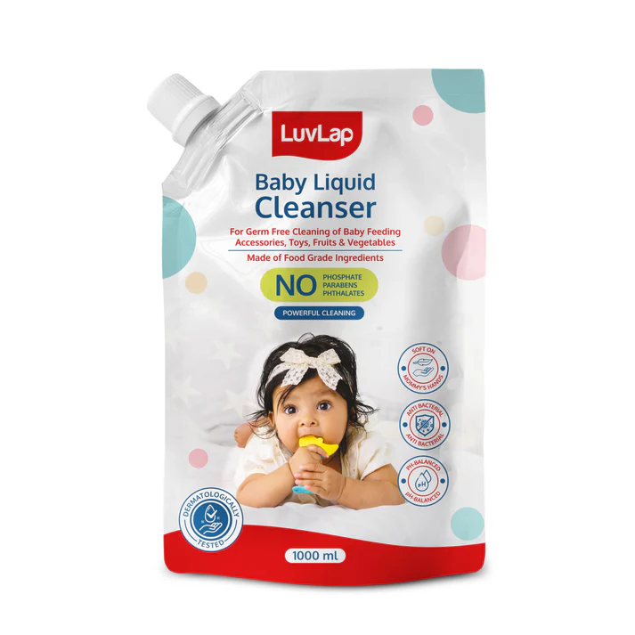 Hello mommies, meet the LuvLap Liquid Cleanser. It is non-toxic food-grade ingredient based formula is tough on stains, kills bacteria & keeps baby items clean. It is dermatologically tested and ensures best hygiene for babies. Better hygiene is the secret for happy, healthy babies.