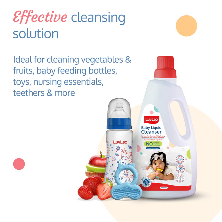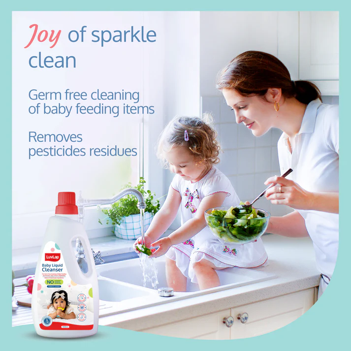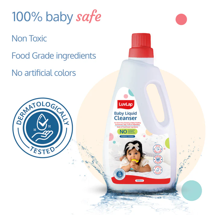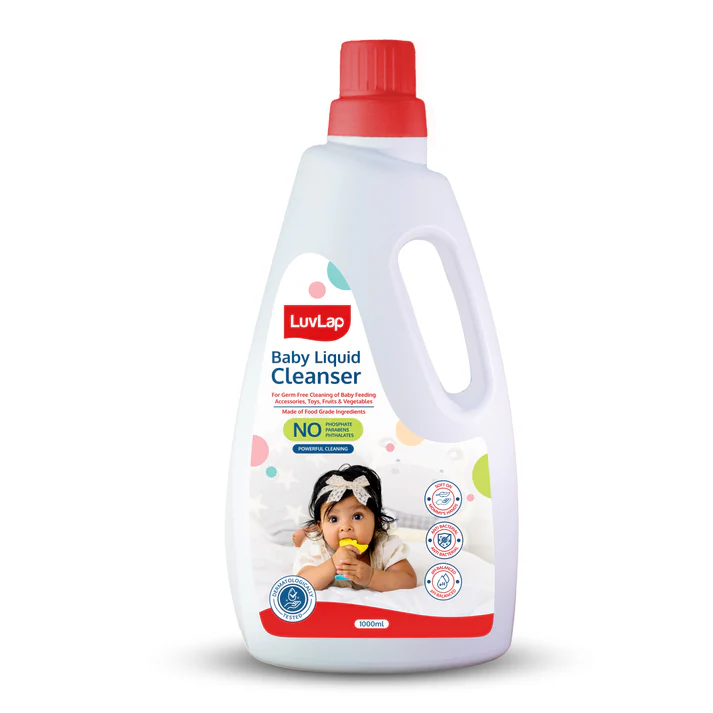 Hello mommies, meet the LuvLap Liquid Cleanser. It is non-toxic food-grade ingredient based formula is tough on stains, kills bacteria & keeps baby items clean. It is dermatologically tested and ensures best hygiene for babies. Better hygiene is the secret for happy, healthy babies.