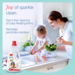 Triple Action Cleaning: Enjoy the benefits of a powerful cleaning solution that not only removes harmful bacteria but also tackles pesticide residues on fruits and vegetables, ensuring a safer and healthier environment for your little one.