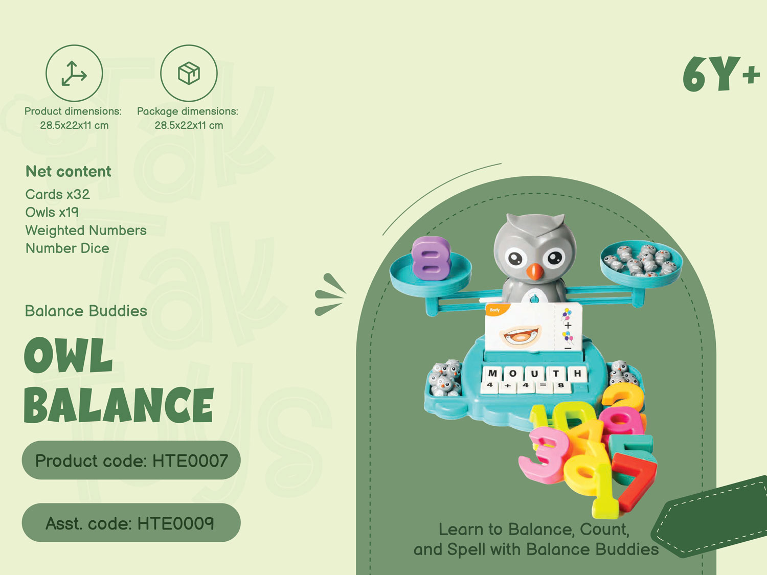 | Net content | Cards x32,Owls x19,Weighted Numbers,Number Dice |