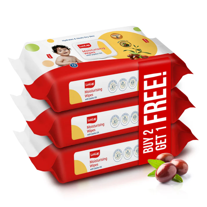 Paraben Free Moisturizing Baby Wipes with Jojoba Oil (72 Wipes/Pack, Pack of 3, Buy 2 Get 1 Free)